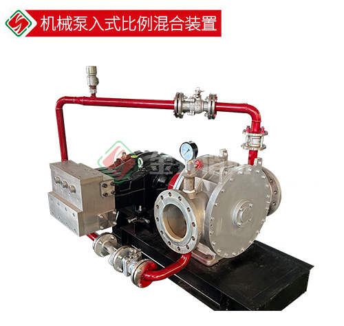 機(jī)械泵入式比例混合裝置由撬裝部分 (無泄水水輪機(jī)、泡沫液泵) 、常壓泡沫液儲(chǔ)罐、控制系統(tǒng)三部分組成。